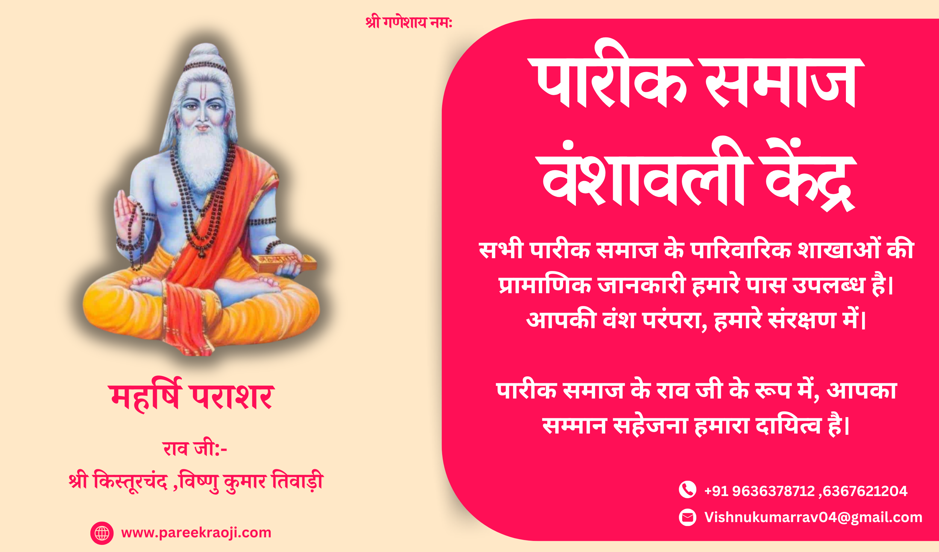 हम जल्द ही आपके लिए एक ऐसा मंच लेकर आ रहे हैं, जहां पारीक समाज की सभी शाखाओं की प्रामाणिक जानकारी उपलब्ध होगी।